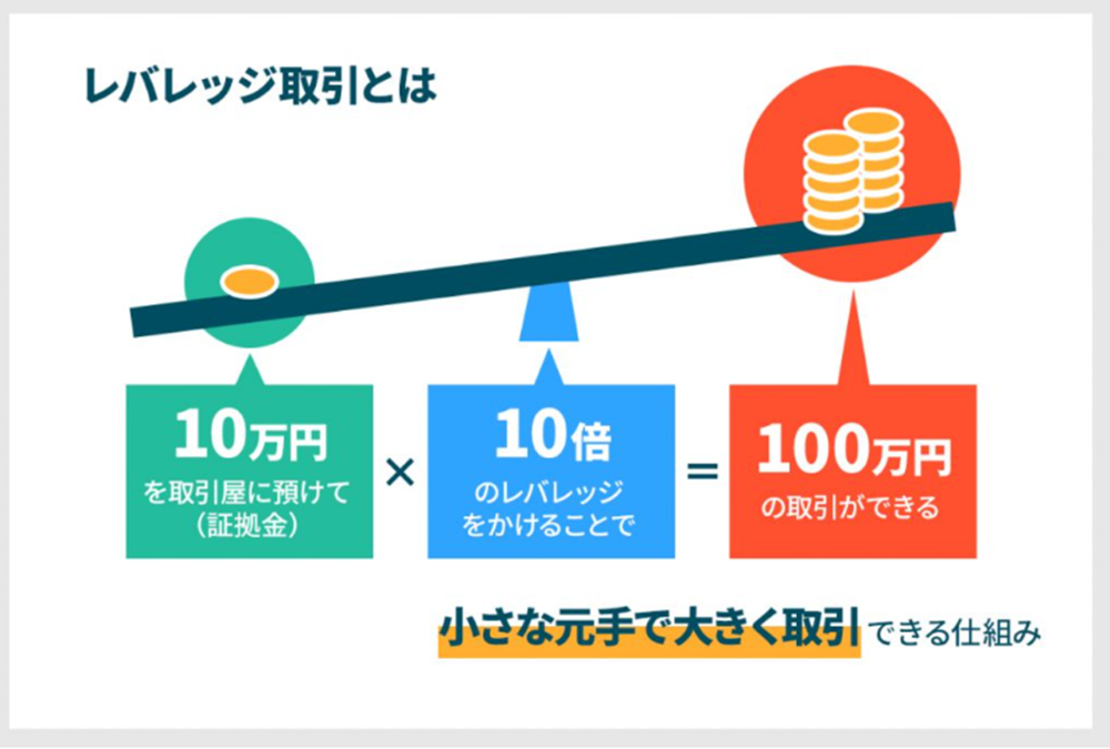 少ない元手で大きな利益を狙えるかわりに、大きな損失を被るリスクもある、ハイリスクハイリターンの取引方法です。