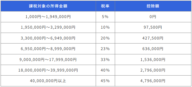 仮想通貨は利益が多くなるほど税率が上昇し、所得税は最大45%