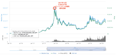 上の表を見れば分かるように、2017年12月にビットコイン取引で当時の史上最高価格である2,350,517円を記録しました。